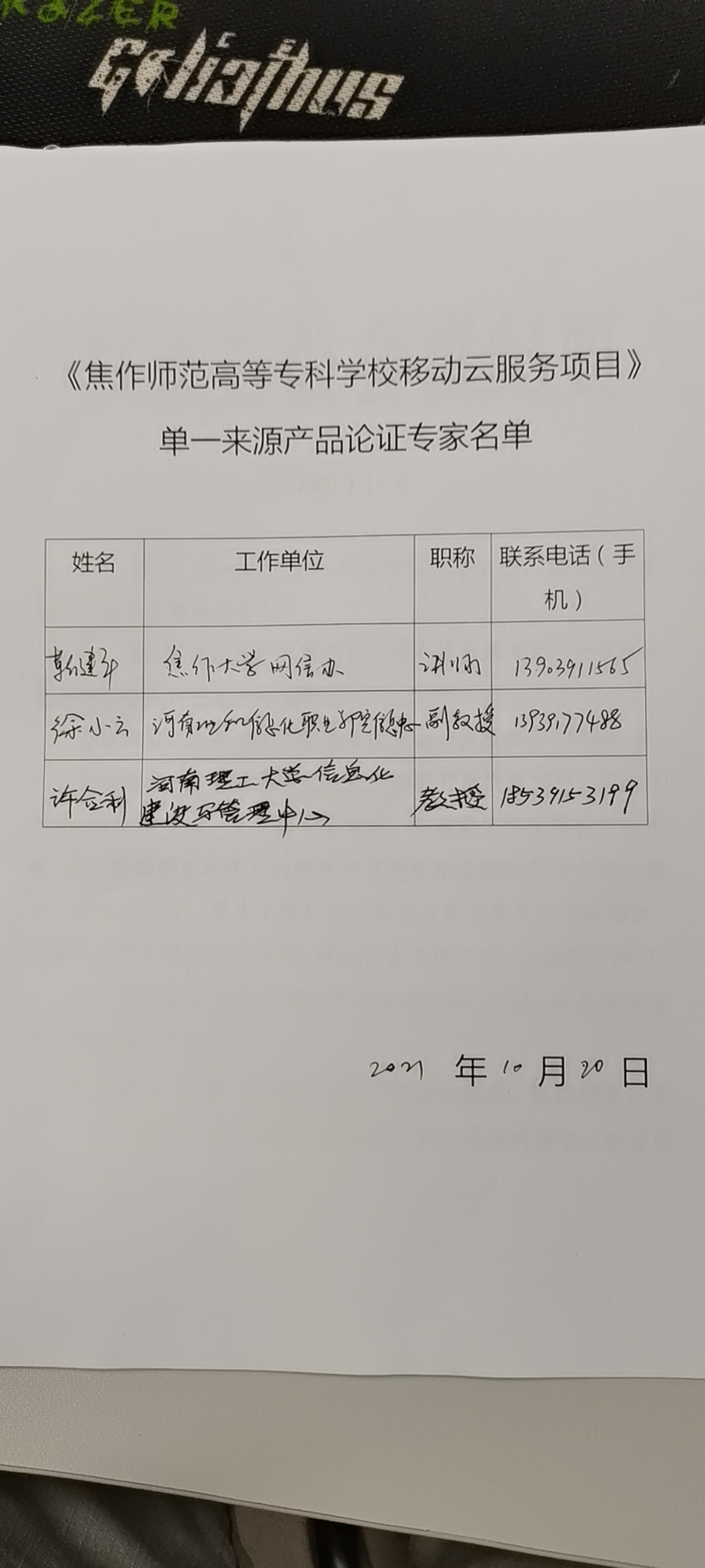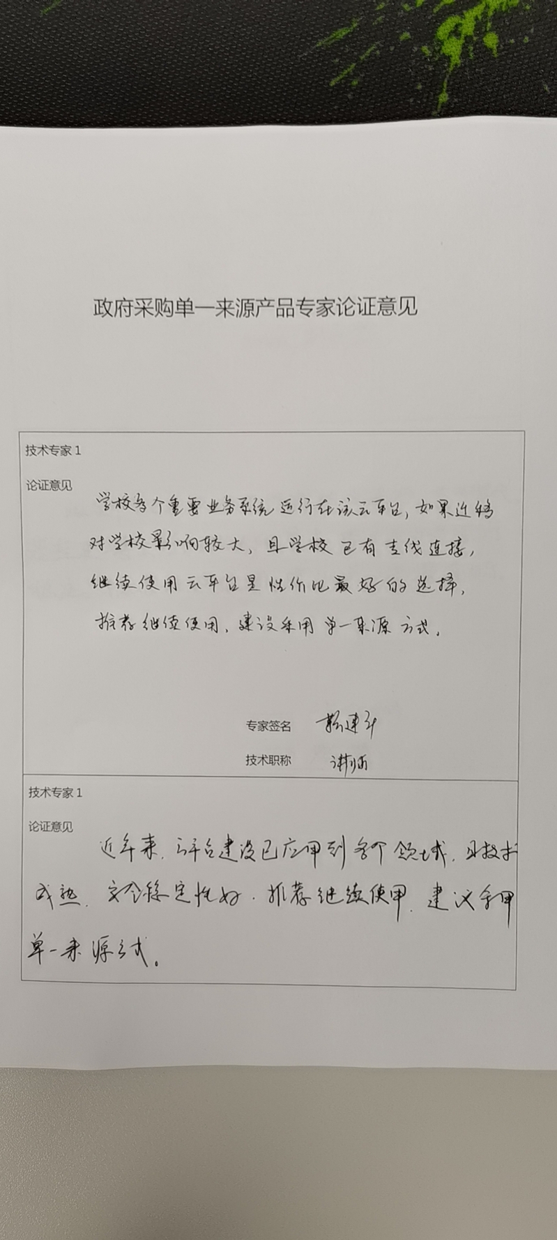 三、专家论证意见(不少于三名行业技术专家)
