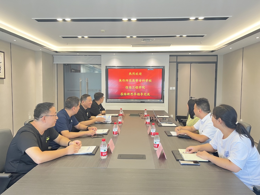 新思齐副总经理牛文姣对我院此次走访调研表示热烈欢迎,接下来介绍了公司的发展历程,并就新思齐在人才培养、专业共建等领域的校企合作机制向米西峰一行做了汇报。米西峰充分肯定了新思齐的发展规划以及近年来获得的相关成绩,并介绍了信息工程学院的基本情况、办学定位、人才培养方案等情况。信息工程学院副院长秦晓明表示,新思齐在技术创新、人才培养等方面与我院科高度契合、优势互补,希望在科教融合、产教融合中,开展广泛交流合作。