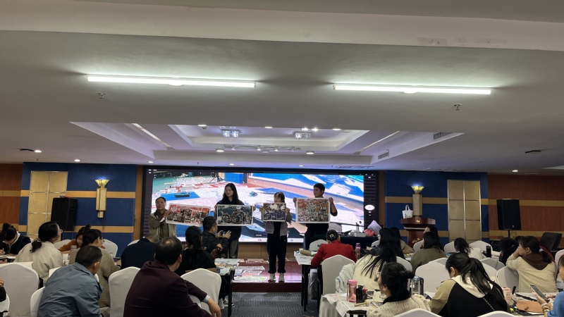 章老师在正式上课之前,就带领学员进行了学具石膏板的设计准备工作。接下来,他从图像设计、选择板材、工具准备、图像转移、墨水准备、色彩运用等各个方面,带领老师们完成了一幅幅纸版画和黑白人像石膏板画的创作。课后,章老师也强调出各个创作步骤中需要注意的事项,以及对木蘑菇、油滚等工具的使用技巧进行了详细讲解。