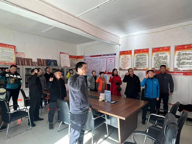 在桃园村村委,全体支部党员重温入党誓词,铮铮誓言表达了不忘初心、牢记使命、永远爱党、信党、跟党走的坚定信心,增强了党组织的凝聚力和战斗力。