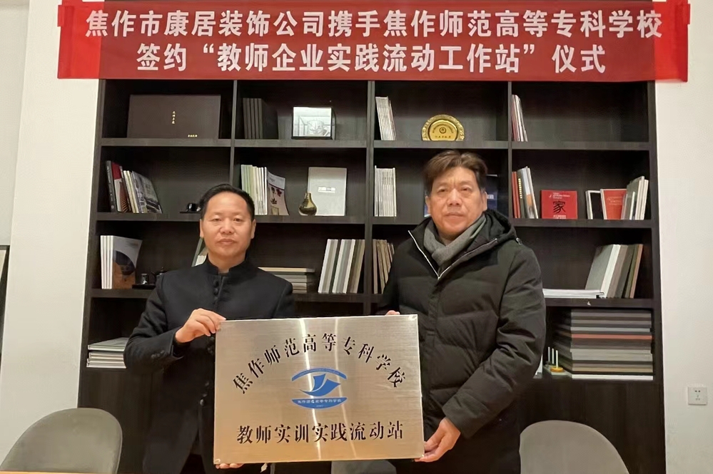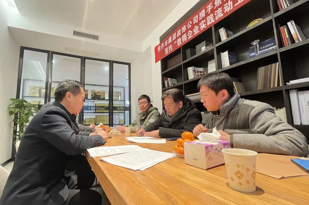 12月16日上午,美术学院院长牛红岩带队前往东易日盛焦作市康居装饰设计工程有限公司签订校企合作协议,焦作师专美术学院教师企业实践流动站成立。