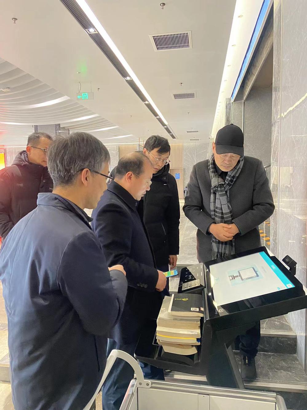 在理工大图书馆副馆长高峰陪同下,一行人参观了理工大图书馆各层空间建设,重点围绕空间利用、文献流通、读者引导、服务优化、设备配置等方面做了详细了解。超星公司的两位工作人员也结合理工大图书管理系统进行了具体展示讲解。