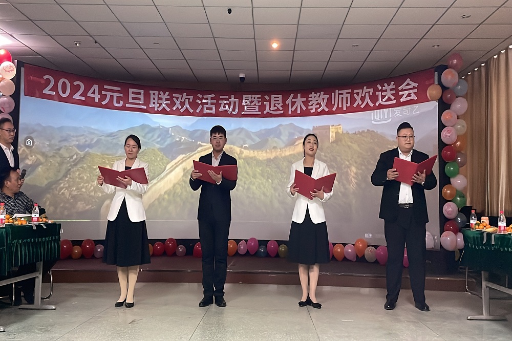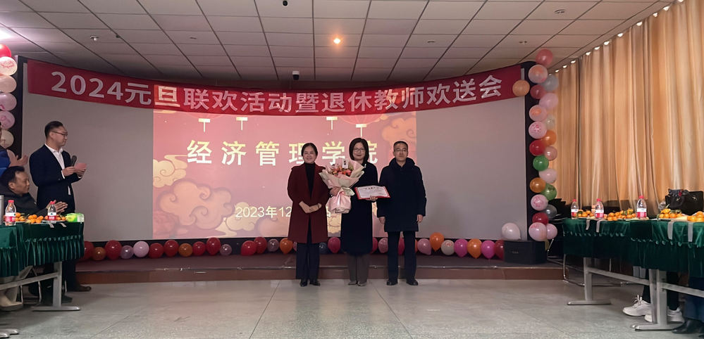 新年的钟声雄浑激昂,时光的脚步快速铿锵。告别2023,相约2024。12月29日下午,经济管理学院在职训楼导游三维实训室举办了“元旦联欢暨退休教师欢送会”。校工会副主席冯霞、校工会妇女主任秦红梅、经济管理学院党政领导班子及全体教职工参加了联欢会。