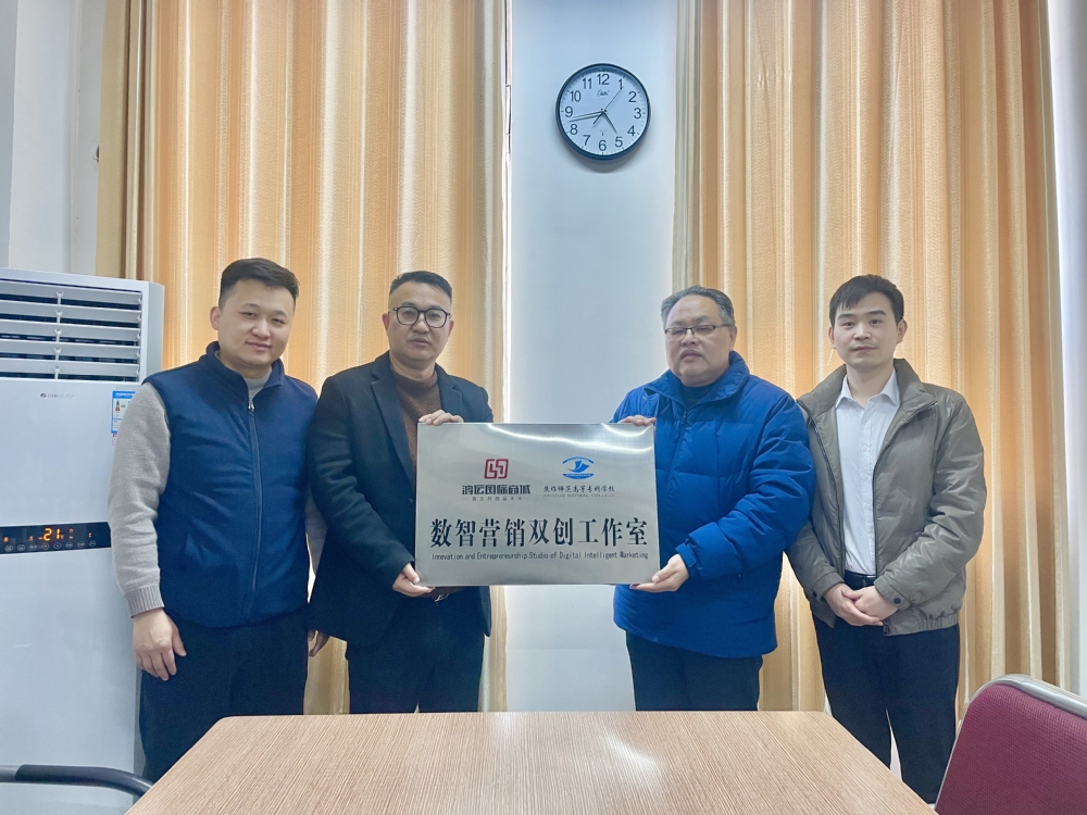 1月5日,学校“数智营销双创工作室”揭牌仪式在二号教学楼521会议室举行。经济管理学院副院长张好收、焦作鸿运直播电商产业园副总经理周星均共同为“数智营销双创工作室”揭牌。
