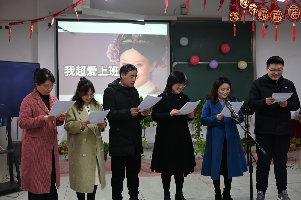 龙行龘龘,欣欣家国。1月10日下午,外语经贸学院举办了2024年新春联欢会,全院教职工欢聚一堂,喜迎新春,校党委委员、工会主席宋萍参加联欢并向全体教师表达了新春的问候和美好的祝愿。