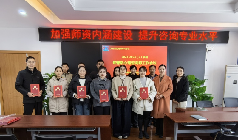 会上,刘利敏对本学期学生的预约接待、心理咨询、专业培训与案例督导等细节问题为与会老师们做了讲解,希望专兼职心理咨询师们能够在专业成长的同时,规范预约咨询程序,做好各项工作记录,继续支持学校的心理健康教育工作。之后,心理健康教育与咨询中心副主任李军霞对老师们强调了心理咨询工作的保密性与专业性,并对提升心理咨询专业水平提出了相关要求:多参与、多交流、多反思、多提升。最后,心理健康教育与咨询中心副主任崔正贺为与会的兼职心理咨询师颁发聘任证书,并合影留念。