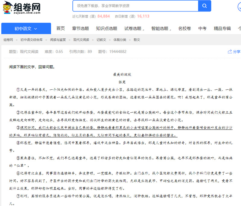 张宪散文入选中考试题