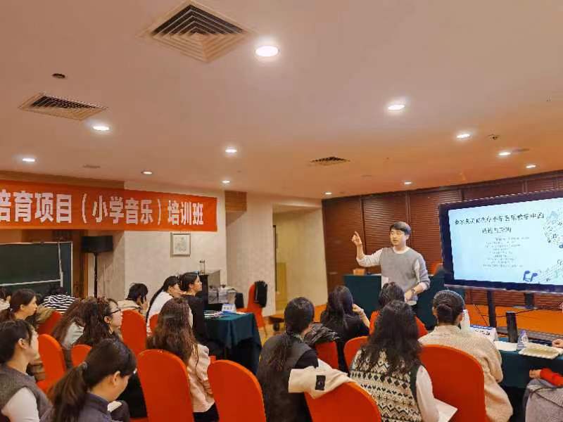 3月23日,在三维戴斯酒店三楼会议室,信阳师范大学的音乐教育专家周骏老师为参加省级骨干教师培训的学员们带来主题为《奥尔夫教学法在小学音乐教育中的理论与实践》的课程。