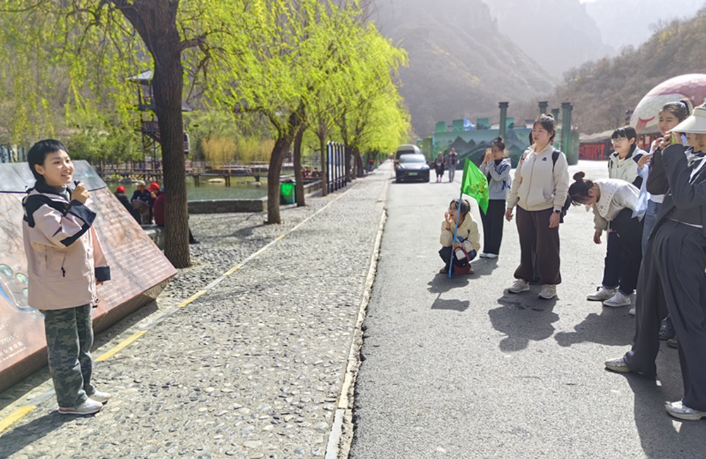 为提升旅游英语专业学生导游讲解职业素养,适应当下旅游业对导游人才技能的新要求,在校内对中英文导游讲解职业技能充分训练的基础上,3月28日外语经贸学院组织旅游英语专业2022级、2023级学生赴云台山作中英文景点现场讲解实训。