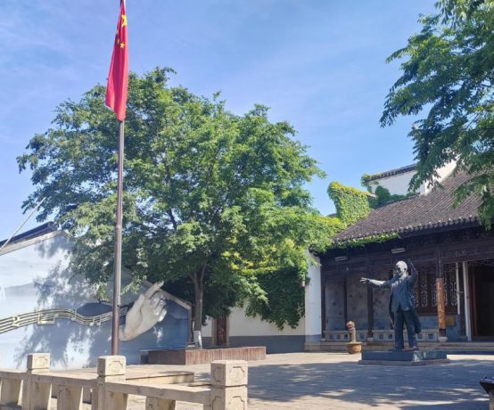 “五星红旗迎风飘扬,胜利歌声多么响亮,歌唱我们亲爱的祖国,从今走向繁荣富强……”嘹亮的歌声在荡口古镇回响,来自美术学院的150名师生,在王莘故居开展了一场别开生面的爱国主义教育活动。