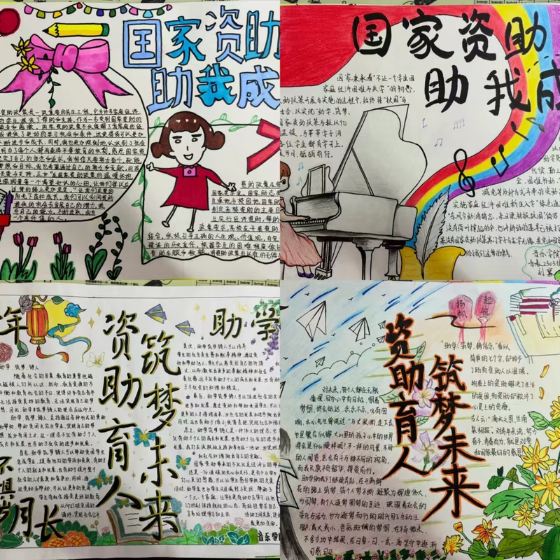 为深入推进国家资助政策的宣传,提升广大学生对国家资助政策的认识,初等教育学院近期开展了“国家资助,助我成长”手抄报比赛。
