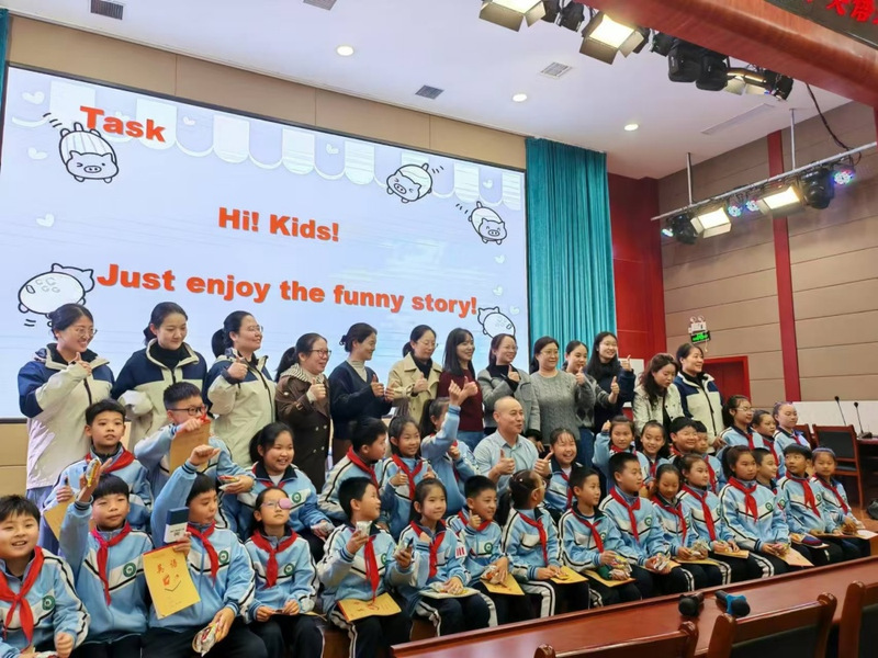11月12日上午,教育部“国培”专家库成员、中原名师孟江涛老师来到丰泽园小学,为学员们带来了一节名为“Five Pies”的绘本教学观摩课。