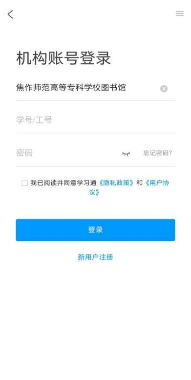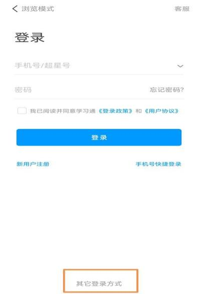 打开学习通APP,选择“其他登陆方式”,填写单位、账号、密码进行登录,登陆后可进行“馆藏查询”“我的借阅”“我的电子证”“资源荐购”等功能的使用。