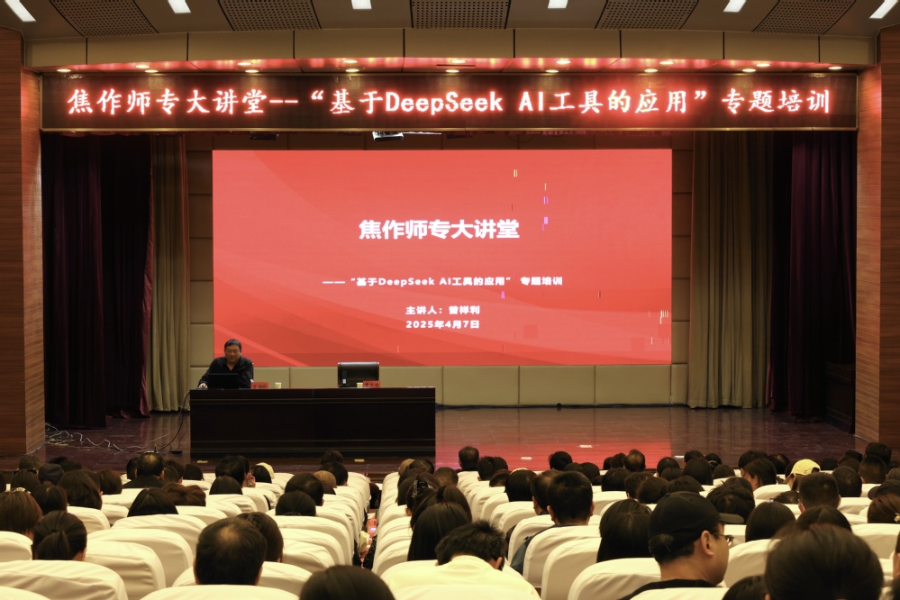 4月7日下午,为全面推进人工智能技术赋能教育教学创新,学校在学术报告厅举办了“基于DeepSeek AI工具的应用”专题培训。本次活动由学校教师发展中心组织,邀请我校计算机专业教师曾祥利讲解。校领导相天东、高闰青、王红艳等出席培训活动,近400名教师及行政教辅人员参加了此次培训。