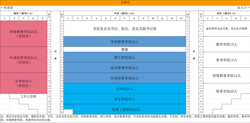 2.各学院学工办主任、毕业班辅导员和班主任在对应学生区域落座,并负责维持好本学院学生的会场秩序;