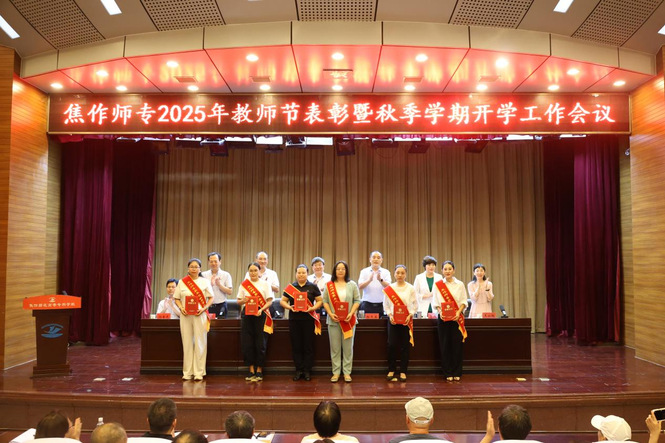 校党委书记张现俭在讲话中,向全体教职员工致以节日的祝福,并围绕“以教育家精神铸魂强师,谱写教育强国建设华章”的教师节主题和秋季学期工作,向全体教职工提出四方面工作要求。一是要落实立德树人根本任务。牢记为党育人、为国育才的初心,以树人为核心、以立德为根本,坚守正确办学方向,强化思想政治引领,守好意识形态阵地,持续在坚定理想信念、厚植爱国情怀、加强品德修养、增长知识见识、培养奋斗精神和增强综合素质上下功夫,着力培养德智体美劳全面发展的社会主义建设者和接班人。二是要深化教育教学综合改革。坚持把改革作为推动教育现代化的根本动力,统筹推进育人方式、办学模式、管理体制、保障机制改革,加快推动调整专业布局、深化教学改革、深化科研改革、加强校企合作等工作,提高学校人才培养的针对性、有效性,努力塑造学校发展的比较优势,更好服务区域经济社会发展,不断增强学校办学的适应性、竞争力和贡献力。三是要全面筑牢校园安全防线。要时刻把安全稳定放在第一位,树牢底线思维,强化红线意识,保持清醒头脑,进一步加强学生安全教育,做好隐患排查整改,深化校园综合治理,及时扫清盲点、堵塞漏洞、消除隐患,进一步强化细节落实,确保师生安全、校园安全。四是要大力学习弘扬教育家精神。全体教职工要大力学习和弘扬教育家精神,坚定理想信念,陶冶道德情操,涵养育人智慧,保持勤勉态度,树立崇高追求,争做“四有好老师”,当好“四个引路人”,为学校奋力创建特色鲜明的师范院校接续奋斗,为焦作市在奋力谱写中原大地推进中国式现代化新篇章中奋勇争先、更加出彩作出新的更大的贡献。
