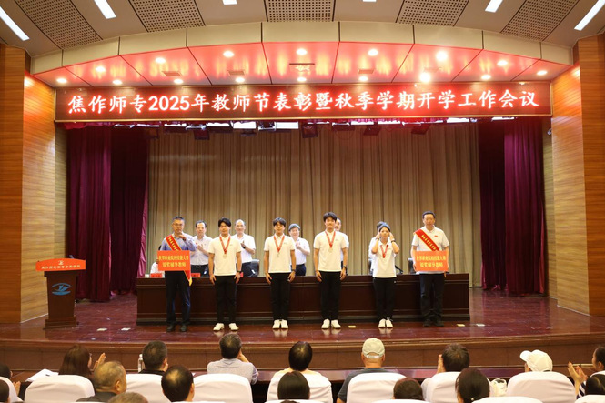 9月8日下午,学校在学术报告厅召开2025年教师节表彰暨秋季学期开学工作会议,表彰2024-2025学年的先进集体和个人,安排部署秋季学期的重点工作。校领导张现俭、相天东、李秋生、高闰青、王静锋、王红艳、闫金龙出席。会议由校党委副书记李秋生主持。