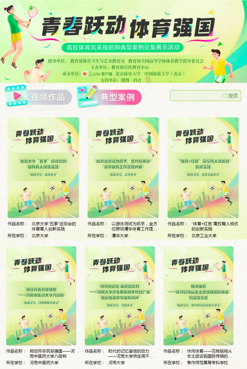 继比赛取得优异成绩后,我校再传喜讯:由学校申报《休闲体育——花样跳绳课程从本土建设到国际传播的实践案例》,在河南省一百多所高校中脱颖而出,成功入选全国高校体育风采典型案例(全国共50个),与清华大学、北京大学等高校共同入选教育部典型案例名单,并通过人民网进行线上展示。据悉,河南省此次上报教育部的共有9所院校,我校是其中唯一一所专科院校。