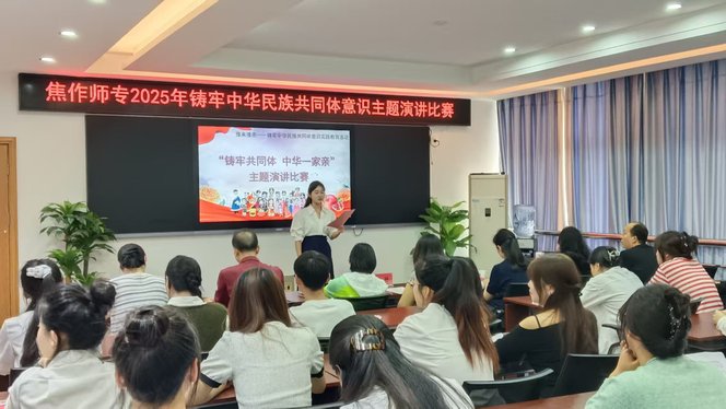 为深入学习贯彻习近平总书记关于加强和改进民族工作的重要思想,进一步加强学校铸牢中华民族共同体意识教育,9月29日学校在职教楼举办“铸牢共同体 中华一家亲”主题演讲比赛决赛。