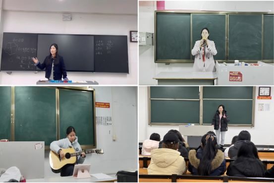 活动聚焦于学科试讲与才艺展示两大环节,全程贴合小学教育岗位的实际能力需求。试讲环节中,学生自主选取语文、数学等小学学科内容,以趣味提问、小组互动调动“模拟课堂”氛围,部分学生还借助利落清晰的粉笔画板书将抽象知识点具象化,既契合小学生的认知特点,也展现出小学教师必备的课堂组织与内容转化能力;才艺展示环节里,演唱、吉他弹唱、葫芦丝演奏等形式轮番登场,其中粉笔画创作更是直接对接小学课堂的板书技能需求——这些才艺不再是单纯的特长展示,而是指向“美育融入教学”“情境化课堂导入”的实用教学辅助能力,尽显小学教育专业“一专多能”的培养特质。学院领导也肯定了学生的综合素养潜力,鼓励大家将技能训练与小学课堂需求深度绑定,让“会教”与“善育” 同步提升。