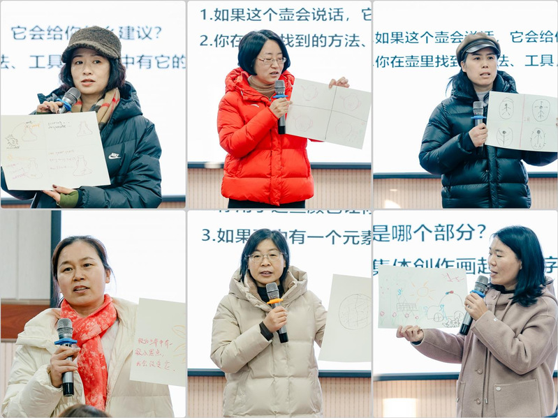在绘画实操环节,参训教师聚焦“情绪表达”“黑点探索”“心理魔法壶”“团体接力绘画”等系列主题,通过亲身体验绘画创作、小组分享解读、专家点评指导等全过程,深入掌握不同绘画主题的应用场景与分析方法。