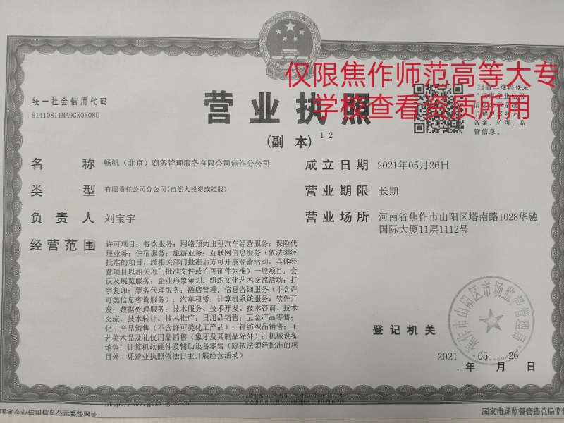 畅帆(北京)商务管理服务有限公司焦作分公司招聘
