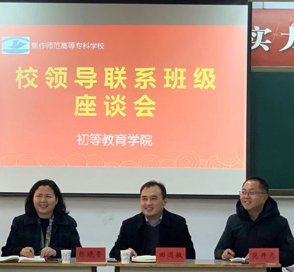 12月30日下午,校长田道敏到初等教育学院与全科2006班学生亲切座谈。初等教育学院院长陈晓香、党总支书记范开元、党总支副书记杨建军等参加座谈。座谈会由范开元主持。
