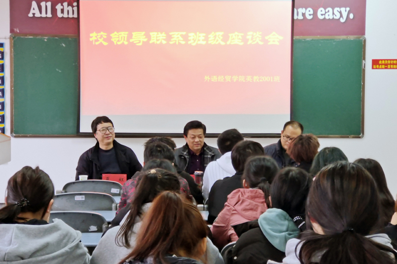 3月18日,校党委委员、副校长杨寰祖来到外语经贸学院,与英语教育专业2001班全体学生座谈交流。
