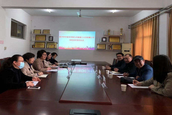 4月9日下午,数学学院与河南理工大学附属小学校校合作协议签约仪式在河南理工大学附属小学顺利举行,数学学院副院长吴允波,数学教育专业教研室主任毋光先,学院教师孙中品、王磊,河南理工大学附属小学校长浮红霞、副校长姚彩云、教务处主任窦艳丽、办公室主任姬国静、数学组组长李莉,数学教师王春艳等参加了签约仪式。
