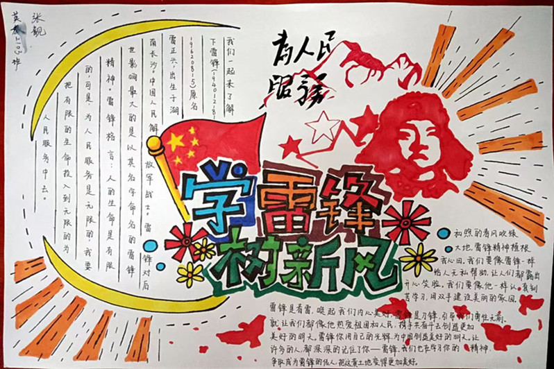近期,我院开展“学雷锋·喜迎党的二十大”系列活动之“雷锋精神我弘扬”主题活动。本次活动由学院学生会宣传部组织进行,活动要求学生以手抄报、黑板报的形式展现出来。全院学生积极参与,各展才艺,创作出精美的作品,同时也记录下校园日常生活中的好人好事。