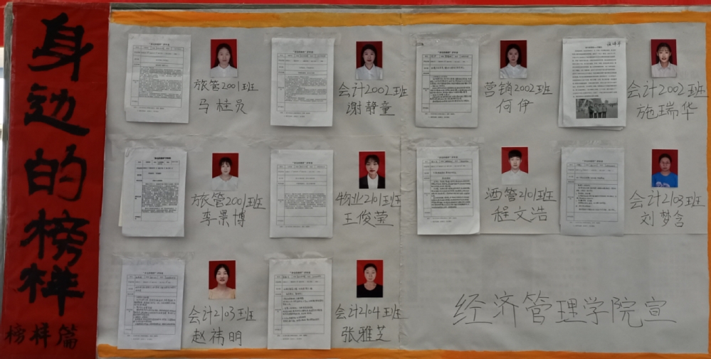 寻找榜样,感受优秀力量,记录心路历程,扬起奋进风帆。为树立典型,表彰先进,营造“比学赶超”的良好氛围,经济管理学院在全体在校学生中深入开展了“寻找身边榜样”系列活动。