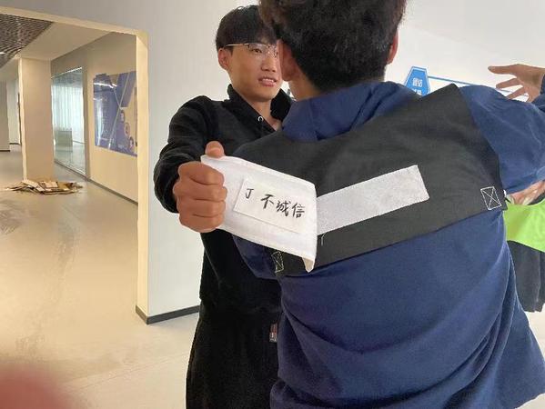 在撕不诚信名牌活动环节中,通过《正话反说》和《抓住诚信》两个游戏将参赛者分为“诚信”与“不诚信”两个阵营进行对抗。同时,在游戏场地随机放有关于诚信含义以及不诚信带来危害的诚信卡片。通过卡片指向不诚信成员的特征来指引同学们,进行撕名牌来淘汰不诚信成员。经过长达一小时的激烈角逐,最终诚信队伍获胜,结束了本场游戏。