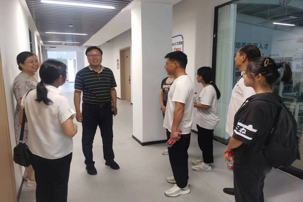 座谈会后,带领新生及家长参观了电子电工实训基地。郑东方详细地向大家介绍了实训科目、设备及取得的项目成果等。
