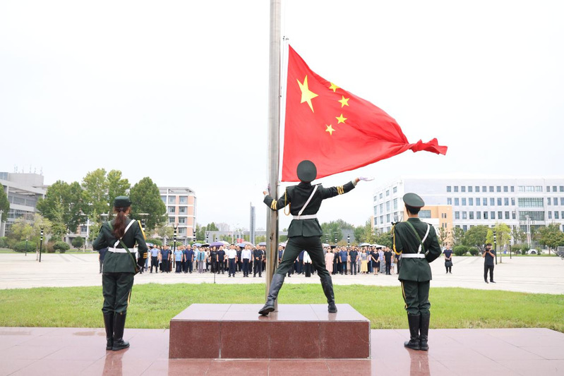 9月8日上午7:30,学校在图书楼广场举行秋季学期升国旗仪式,校党委书记张现俭发表讲话,校长相天东主持。校领导李秋生、高闰青、王静锋、王红艳、闫金龙参加。