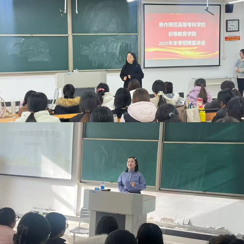 为全力促进初等教育学院2026届毕业生就业工作,11月份,我院在3号教学楼212、108教室分别召开了两场毕业生招聘宣讲会。