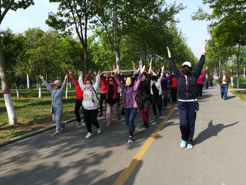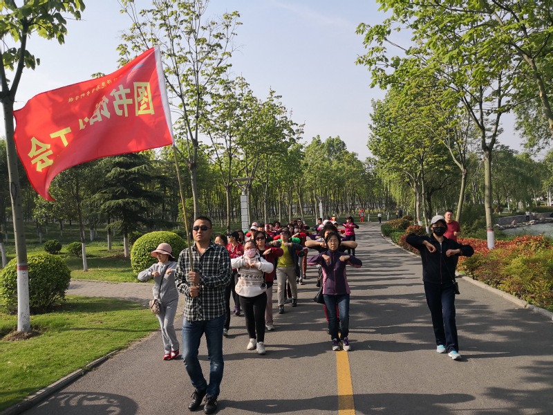 伴随着铿锵有力的音乐,大家采着鼓点列队而行。在活动中大家兴致高昂,一边随着领走的同志健步前行,跟着音乐的节奏做出各种健身动作,一边呼吸着清新的空气,欣赏着公园的春色与美景。每个人脸上都洋溢着喜悦与快乐,享受着健康运动带来的身心愉悦。欢快的笑语,携手的鼓励,奋力的角逐,畅快的汗水,一并挥洒在这富有生命力的季节,为这春日的清晨增加了一道亮丽的风景。