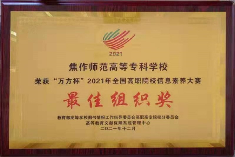 我校图书馆联合信息工程学院组队参赛,经过层层选拔,取得优异成绩,荣获2021年全国高职院校信息素养大赛最佳组织奖。(图:魏红专文:宋潇洁审核:许安涛)
