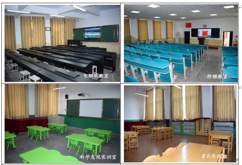 2.教学设施:学前教育专业拥有设施齐全,功能完备的专业实训室。建有音乐实训楼1栋,舞蹈实训室、手工实训室、蒙台梭利教育等21个校内实训室;先后在北京、广东、深圳等一线城市和焦作地区建立了校外实习实训基地106个。