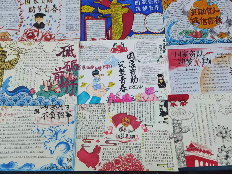 为大力宣传国家资助政策及成效,切实做好学生资助工作,激励广大受助学生奋发自强、立志成才、感恩回馈、报效国家,近日,我校在全体学生中开展了以“国家资助筑梦青春”为主题的书法和手抄报比赛。