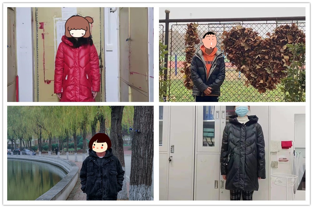 尊重个性,贴心服务。为做好发放工作,学生处提前安排,将羽绒服样品摆放在暖暖超市,分时段让学生前来试穿,自主选择款式和尺码,确保每位学生能够领到自己喜欢的、适合自己的衣物。