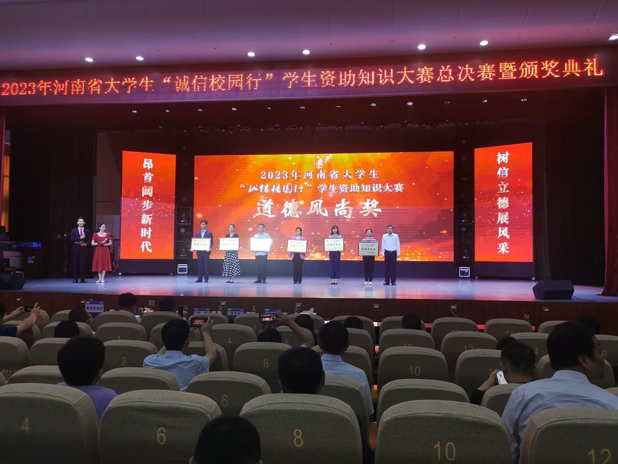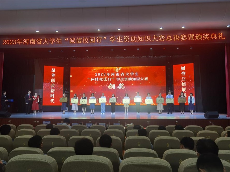 5月29-6月1日,由河南省教育厅、中国人民银行郑州中心支行、中国银行保险监督管理委员会河南监管局、国家开发银行河南省分行主办的河南省大学生“诚信校园行”学生资助知识大赛决赛在南阳理工学院成功举办。我校从全省156所参赛高校中脱颖而出,荣获决赛铜奖、道德风尚奖和优秀组织奖。