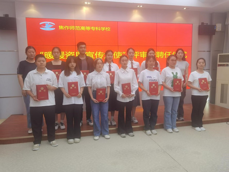 评选现场,27位参赛者依次上台宣讲,他们详细阐述了自己所了解的资助政策、分享了自身的青春奋斗故事,充分展现了同学们自立自强、知恩感恩的优秀品质。经评委打分,最终15位选手被选聘为2023年暖暖资助宣传大使。皮振芳为他们颁发聘书并合影留念。最后,皮处长指出选聘学生资助宣传大使的重要性,勉励同学们勇担重任、踔厉奋发,做资助政策的学习者、传播者,让党和国家的资助政策惠及更多同学。选手们纷纷表示要以“暖暖资助宣传大使”为起点,做好宣传工作,让学生资助政策进一步走向每一个师专学子。